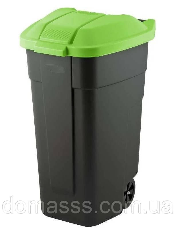 Сміттєвий контейнер на колесах використовується для збору, зберігання, транспортування побутового і промислового сміття (скло, пластмаса, папір і т. д.) Контейнер відрізняється високою надійністю, легкістю, зручністю в обслуговуванні і транспортуванні. Щільно прилегла кришка перешкоджає поширенню запахів. Ці баки легкі в експлуатації, чищення та транспортуванні щодо традиційних, металевих.